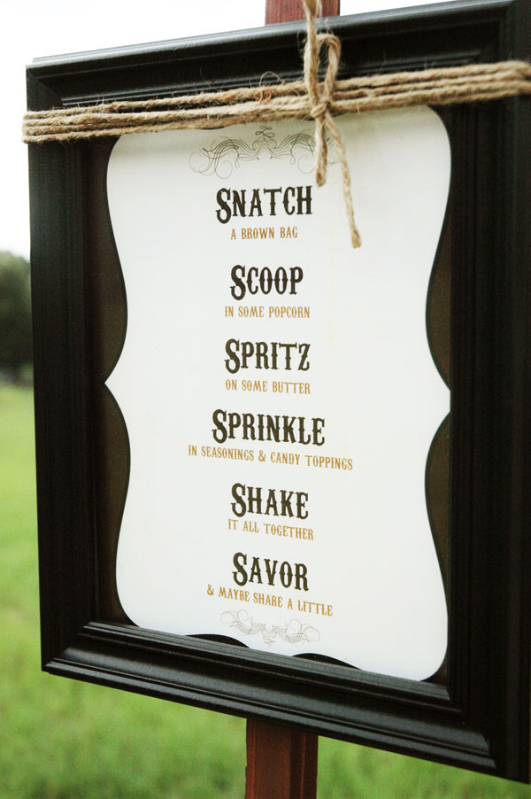 I designed the popcorn bar to be interactive so that everyone, (even the kids), could customize their own bags of popcorn.